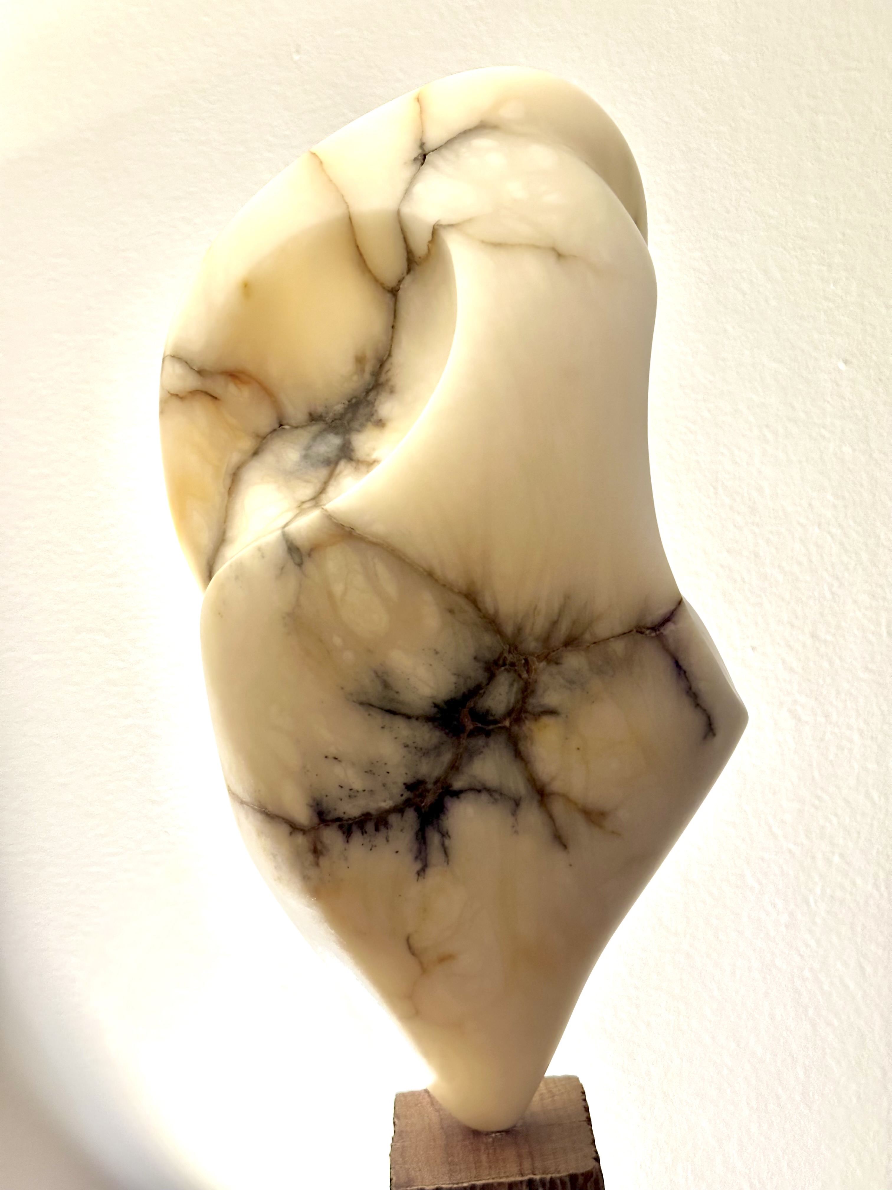 Dit gevoel ervaar ik het sterkst bij marmer, omdat ik dit materiaal associeer met een lange traditie en de klassieken in zowel beeld, literatuur als geschiedenis. Het gevoel dat ik bij (witte) albast heb, is juist omgekeerd en roept bij mij een gevoel van lichtheid en kwetsbaarheid op.